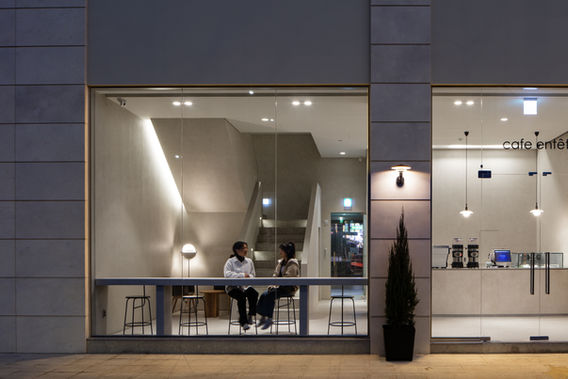 2개 층의 공간으로 구성된 카페는 비교적 적은 면적의 1층에 주문공간과 투고(to-go) 손님을 위한 공간만을 배치하고, 단순하지만 인지성이 좋은 내부계단을 통해 객장의 주요공간인 2층으로 자연스럽게 접근하도록 계획하였습니다. 건물 입면의 분위기가 1층 매장 내부는 물론 내부계단을 따라 2층 객장과 연속되고, 건물 전체의 분위기를 일관성 있게 형성하는 것이 중요했습니다. 그리고 2층에 도착하면 갤러리의 회랑과 같은 메인 공간이 펼쳐집니다.
